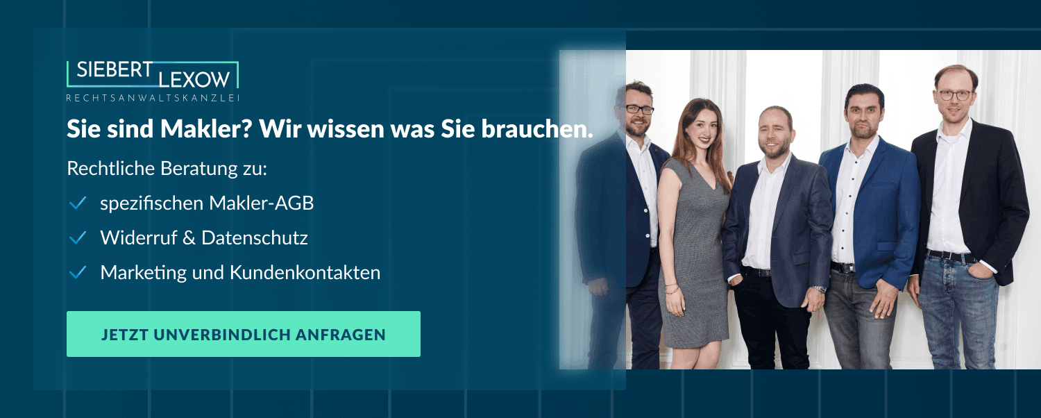 Klären Sie Verbraucherkunden in diesem Zuge auch über ihr Widerrufsrecht auf: Innerhalb von 14 Tagen können diese ohne Angabe von Gründen den Vertrag mit Ihnen widerrufen. Bei einem wirksamen Widerruf müssen Sie bereits gezahlte Maklercourtagen zurückzahlen.