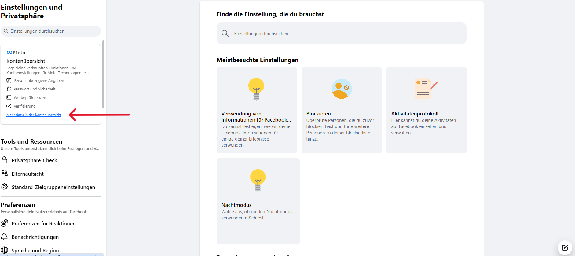 In den Einstellungen klicken Sie dann links auf “Mehr dazu in der Kontenübersicht”.