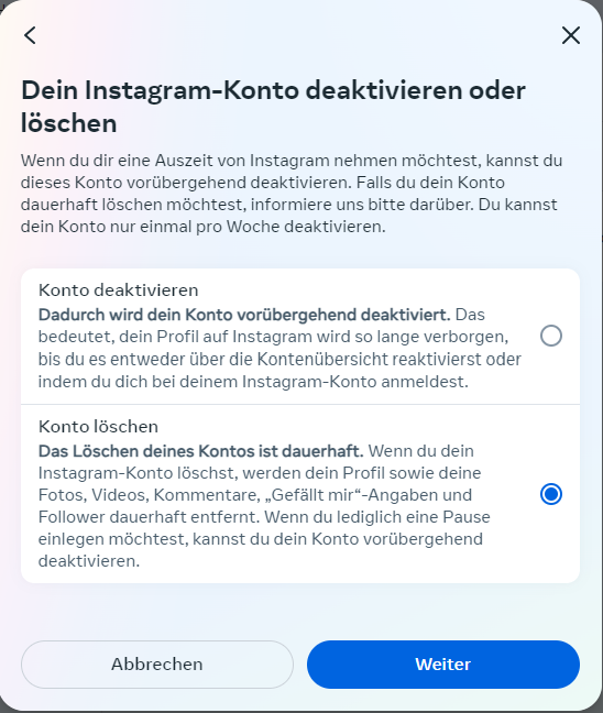 3. Instagram Konto löschen: Schritt für Schritt Anleitung