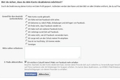 Jetzt können Sie auswählen, ob Sie Ihr Konto löschen oder deaktivieren wollen: