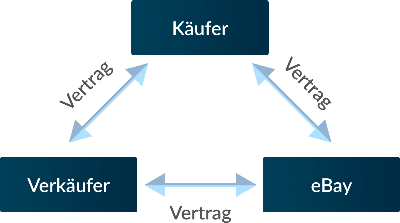 Bei eBay gibt es mehrere Verträge. Käufer und Verkäufer schließen einen Vertrag mit eBay. Hinzu kommt dann der eigentliche Kaufvertrag zwischen dem Händler und den Käufern.