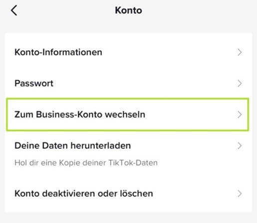 Bevor Sie starten und Ihren Link zum Impressum einfügen können, müssen Sie Ihren persönlichen TikTok-Account in ein Unternehmens- oder Business-Account umwandeln: