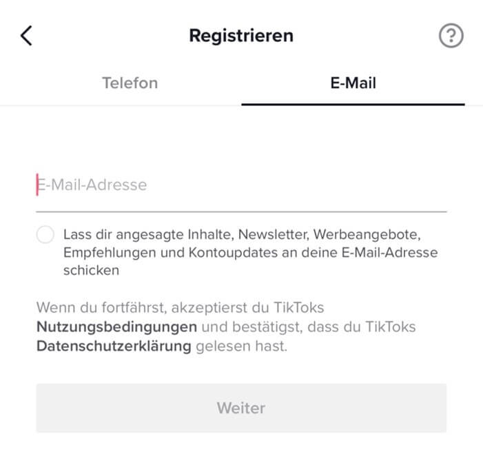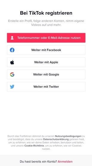 Bevor Sie loslegen können, benötigen Sie zunächst ein TikTok-Konto, sofern Sie noch nicht über ein eigenes Konto verfügen. Haben Sie bereits ein TikTok-Konto erstellt, dann können Sie direkt mit Schritt 4 fortfahren.