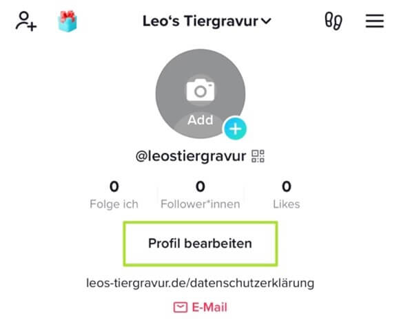 Hinweis: Damit Sie einen Link zu Ihrem Impressum einfügen können, benötigen Sie mindestens 1.000 Follower. TikTok schaltet erst ab dieser Followerzahl das Feld „Website“ in Ihrem Profil frei, sodass Sie erst dann Ihren Link hinterlegen können. Dasselbe gilt auch, wenn Sie einen Link zu Ihrem Linktree o.ä. einfügen möchten. Die Möglichkeit, einen Link in Ihrer Biografie zu hinterlegen, ist grundsätzlich nicht möglich. Aus diesem Grund zeigen wir Ihnen die jeweils unterschiedlichen Möglichkeiten – egal ob weniger oder mehr als 1.000 Follower.
