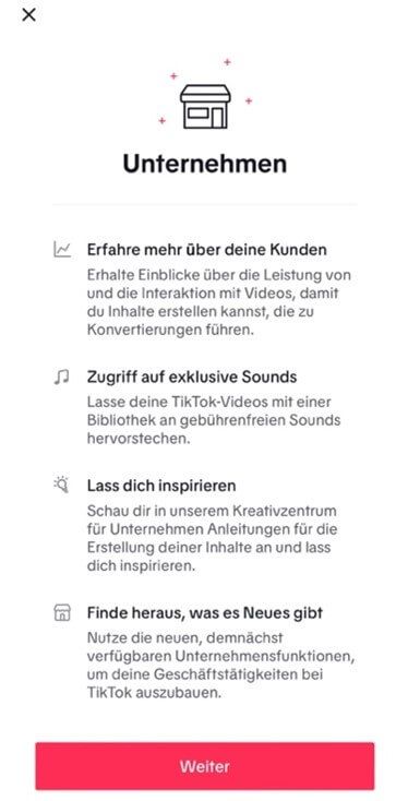 4. Sie sind nun bereit, um Ihren persönlichen TikTok Account in ein Business Account zu ändern.