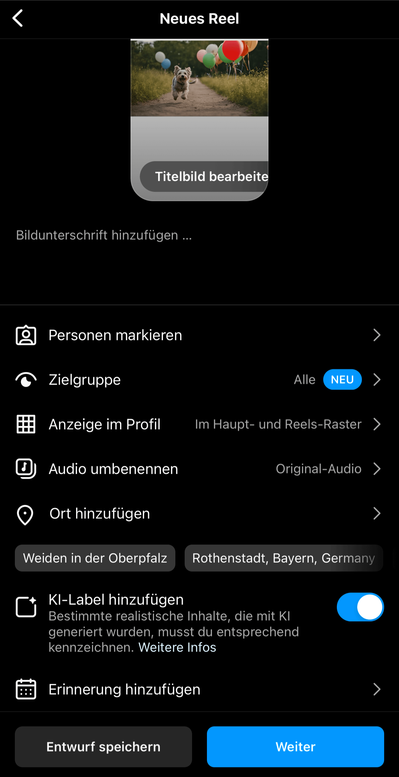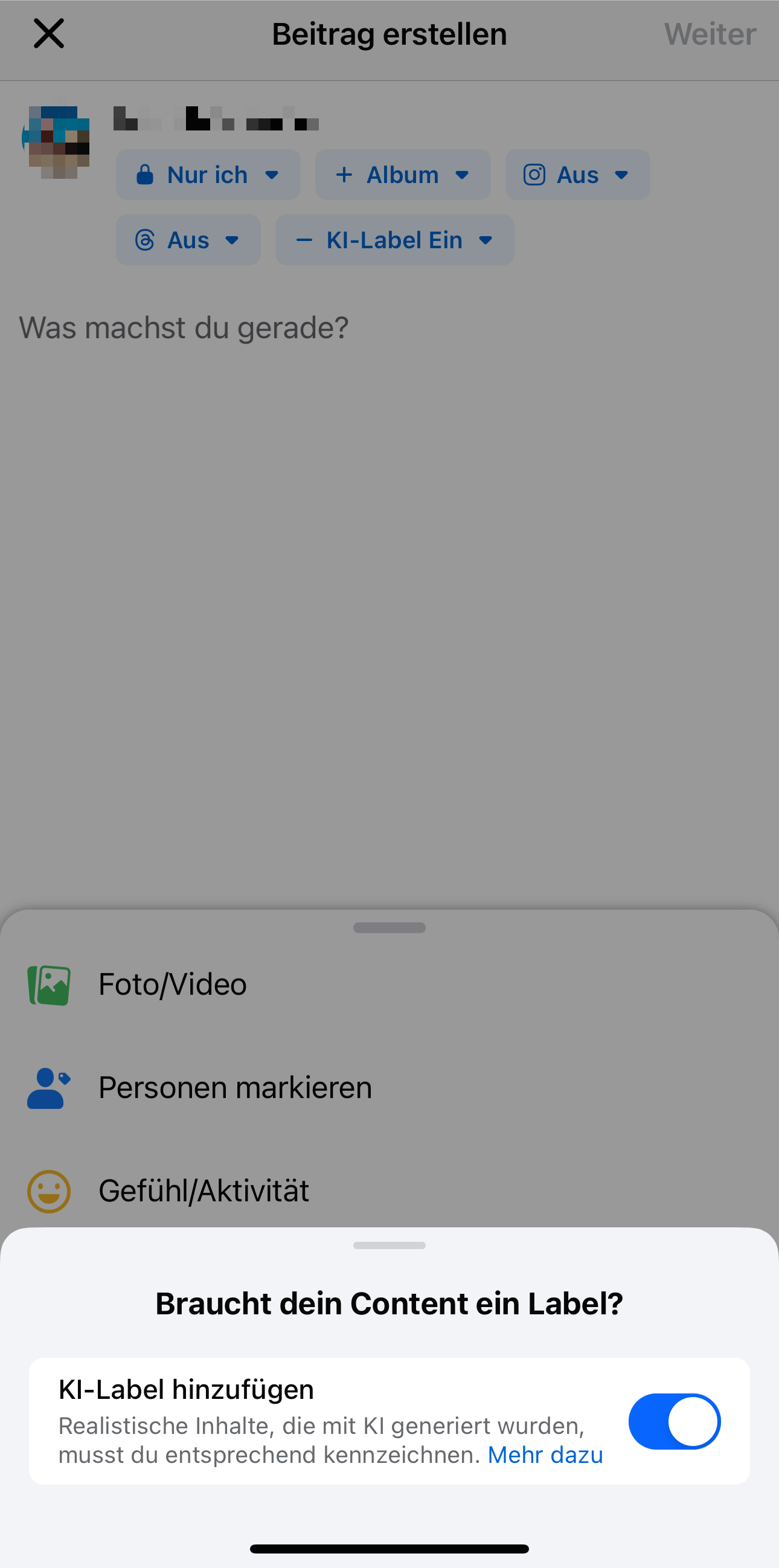 Facebook & Instagram: Auch auf Facebook und Instagram gibt es mittlerweile sowohl eine automatische als auch eine manuelle Funktion, KI-generierte Inhalte als “Mit KI generiert” zu kennzeichnen. Mehr dazu können Sie bei Meta selbst lesen: KI-generierte Inhalte bei Meta.