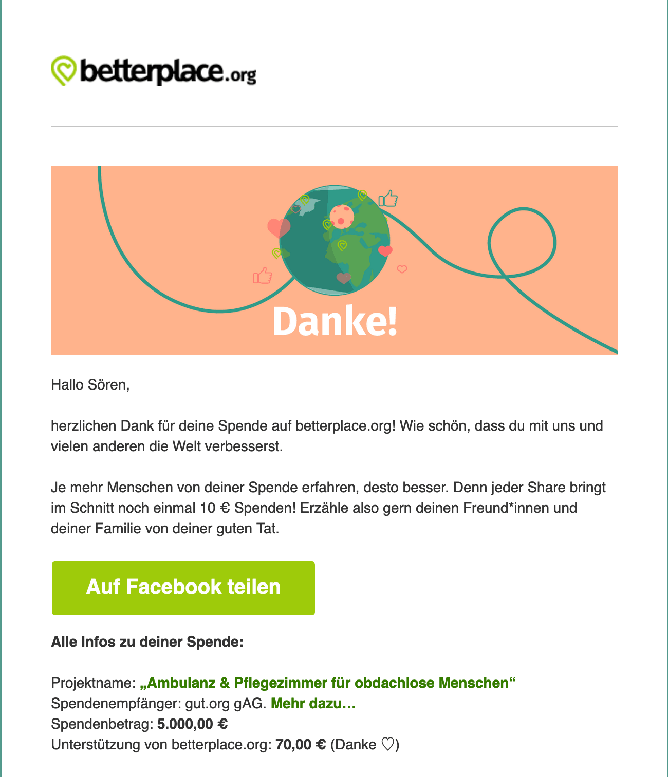 2020 haben wir insgesamt 15.000 Euro aus unserer eRecht24 Weihnachtsaktion gespendet. Die Aktion brachte diesmal 5.000 Euro für die "Die Arche Deutschland", 5.000 Euro für die Nothilfe von "Ärzte ohne Grenzen" sowie 5.000 Euro für das Projekt "Ambulanz & Pflegezimmer für obdachlose Menschen" zusammen.