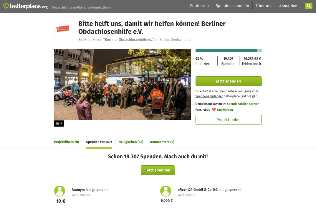 Unterstütztes Projekt: Berliner Obdachlosenhilfe e.V.