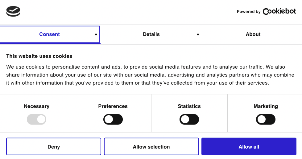 Ein Cookie Consent Tool funktioniert wie eine Art Maske, die Sie über Ihre Webseite legen. Besucht ein Nutzer Ihre Seite, erscheint ein Pop-Up-Fenster, auf dem er per Häkchen seine Einwilligung aufgeschlüsselt nach Cookie-Arten setzen kann. Setzt der Nutzer bei einem Tool keinen Haken, werden diese Cookies auch tatsächlich blockiert.