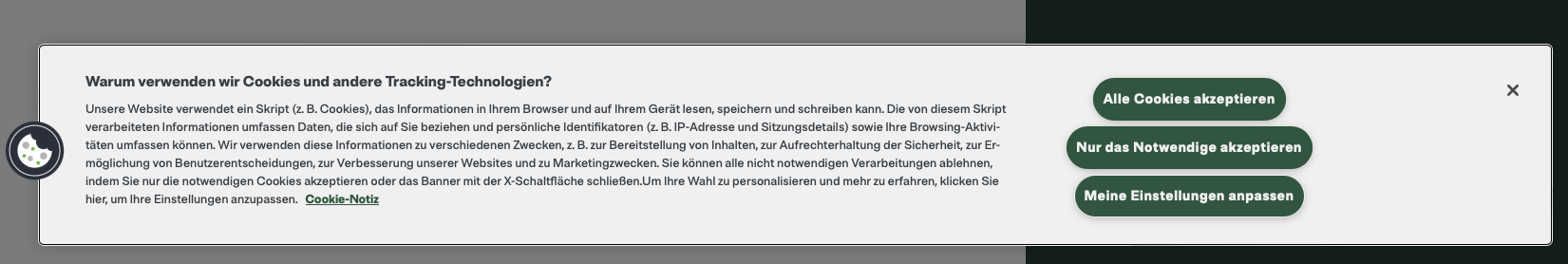 Mit einem Klick hierauf öffnet sich ein entsprechendes Cookie-Auswahl-Fenster.