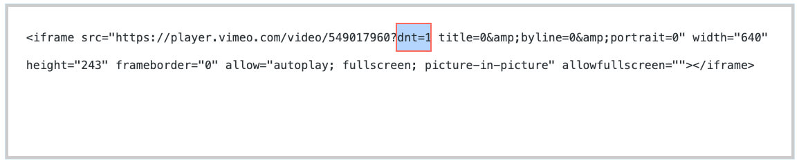 Dazu betten Sie eine sogenannte dnt-Bezeichnung („Do-Not-Track“) in den Einbettungscode des Videos ein: