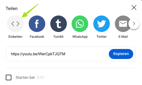 Möglichkeit 4: Link zu YouTube oder Vimeo setzen